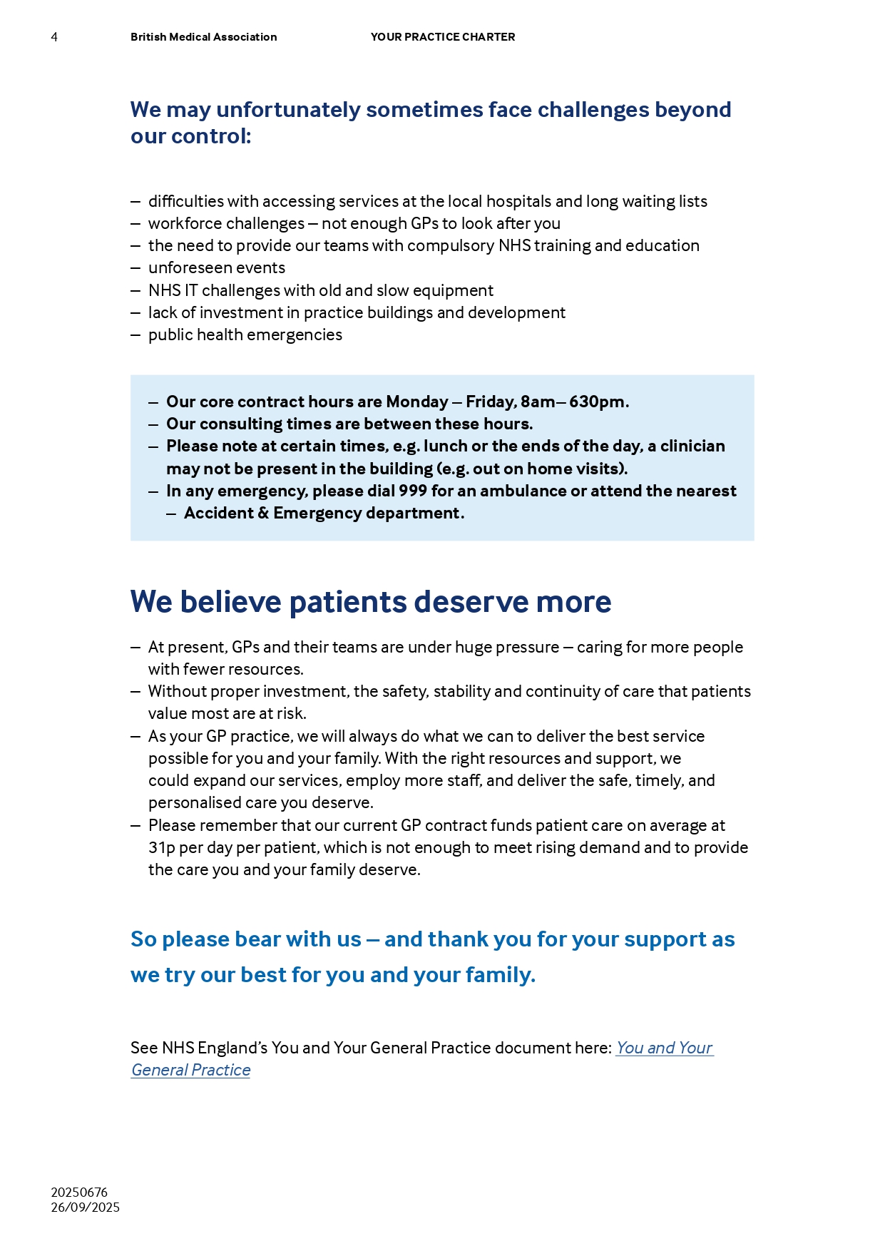 You and your general practice – additional information