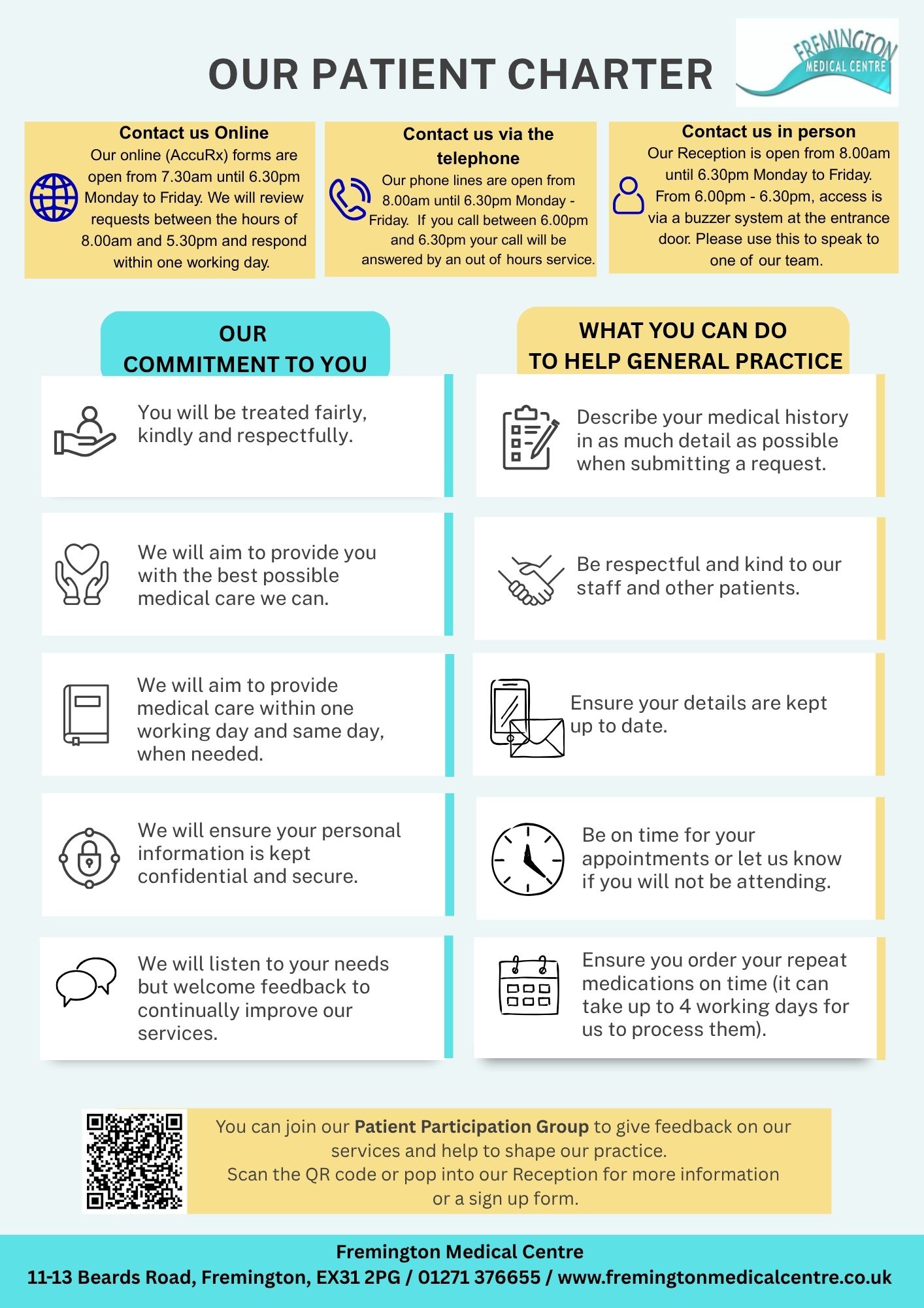 Our new Patient Charter sets out what you can expect from us and what we ask from our patients in return.